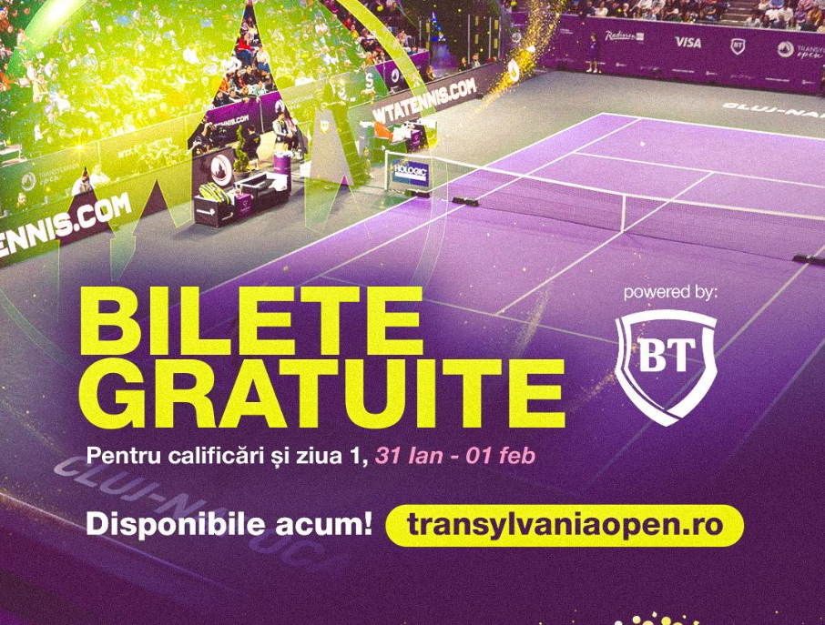 Banca Transilvania continuă să susțină tenisul românesc și internațional, oferind bilete cu acces gratuit în primele două zile ale Transylvania Open WTA 250, care se va desfășura în perioada 31 ianuarie – 7 februarie 2026, în BT Arena din Cluj-Napoca.