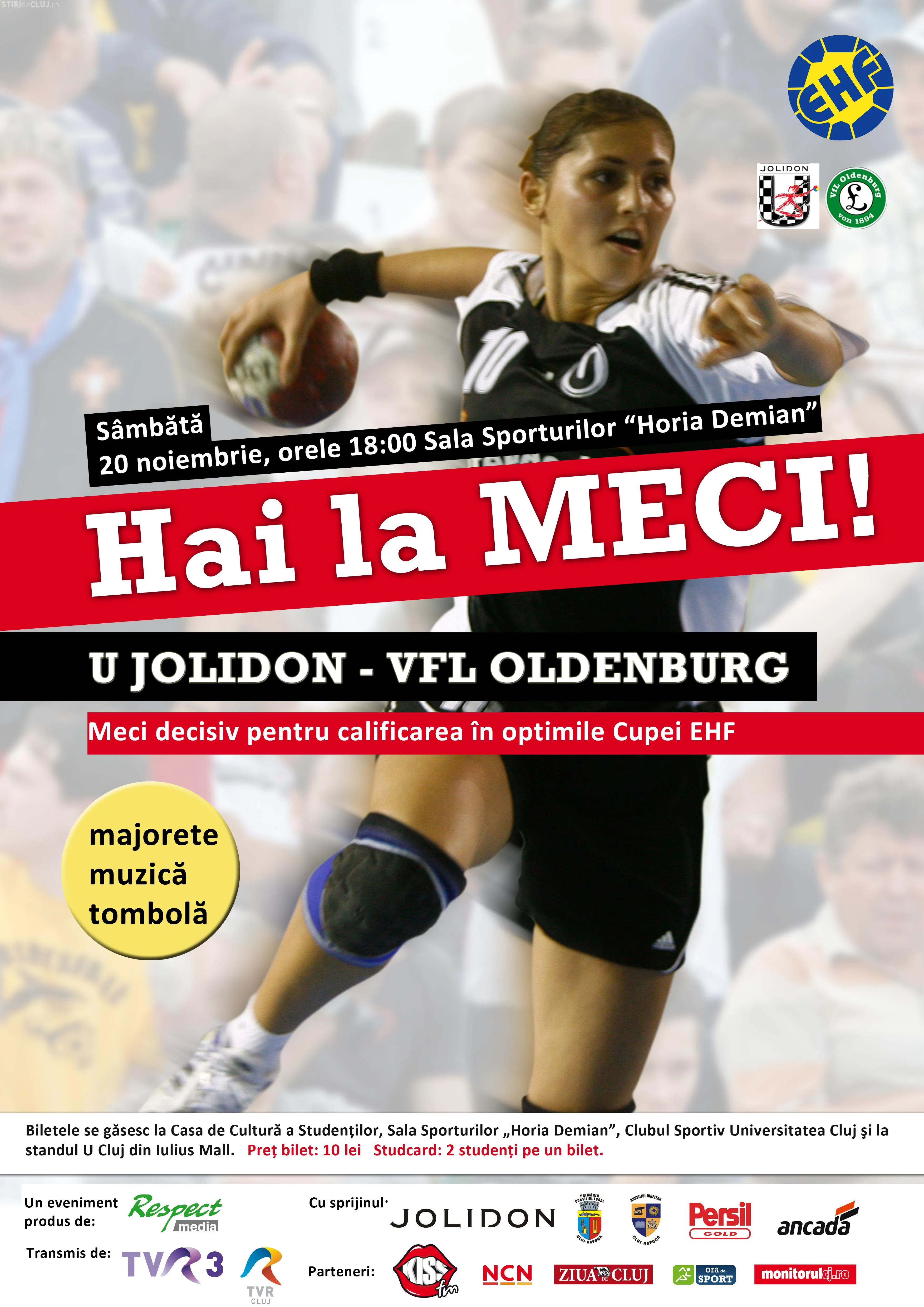 Biletele la meciul U Jolidon - VFL Oldenburg, de sambata, 20 noiembrie, in care se disputa calificarea in optimile Cupei Europene de Handbal Feminin, au fost puse in vanzare.