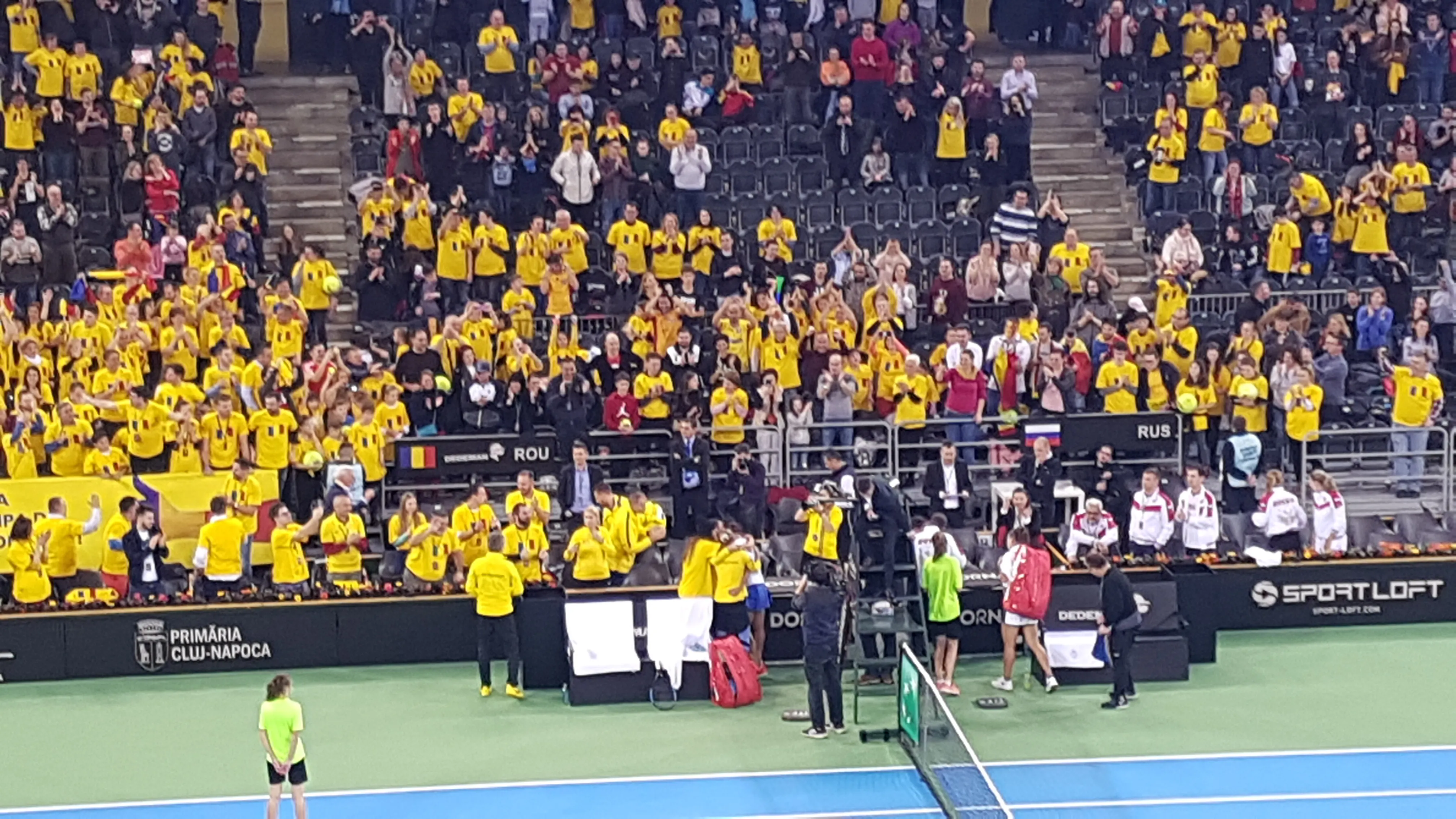 Primarul Emil Boc a bătut toba timp de șapte ore la BT Arena. Edilul a stat în galerie și a susținut România în duelul din Fed Cup cu Rusia.