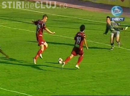 A fost o faza scoala a "feroviarilor" si mingea a trecut printre fundasii U Cluj si s-a oprit la Cristi Bud, care a fost blocat de Hutanu.