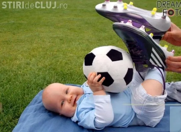 Alex a fost îmbrăcat în culorile U Cluj și chiar a încălțat ghetele tatălui său pentru o ședință foto unică, direct pe gazonul Cluj Arena.