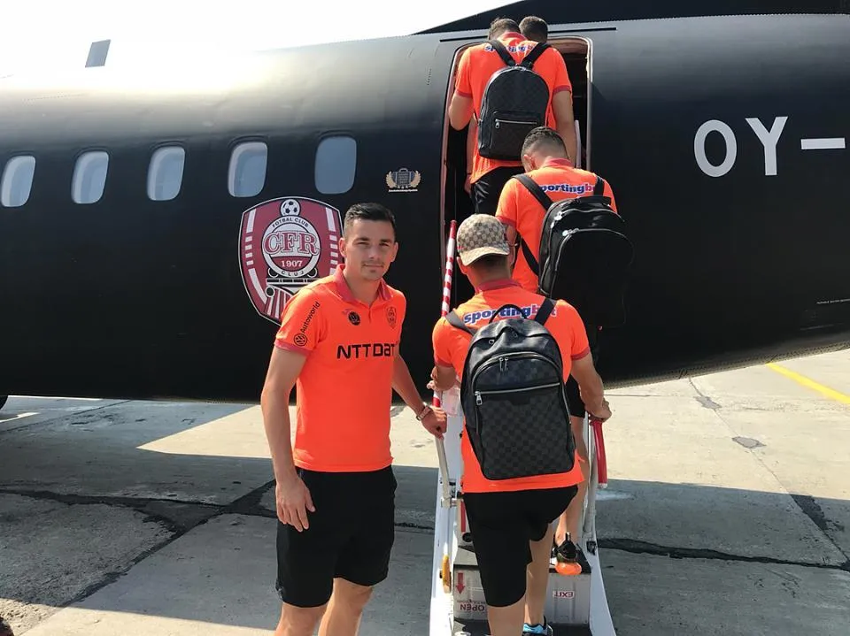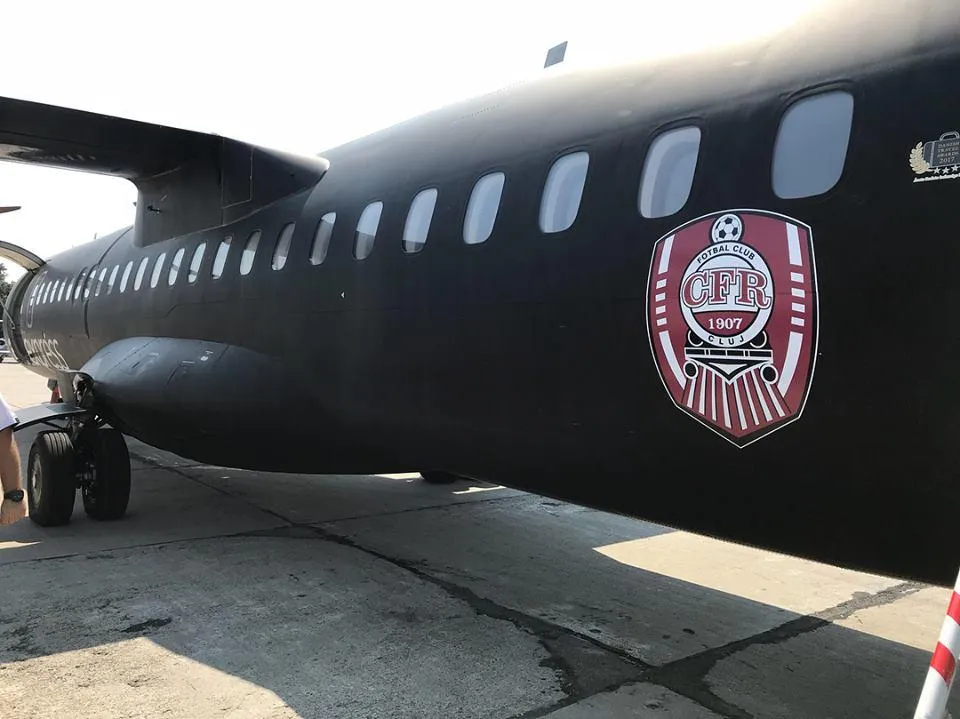 CFR Cluj a plecat spre Luxemburg cu un avion personalizat, de culoare neagră.