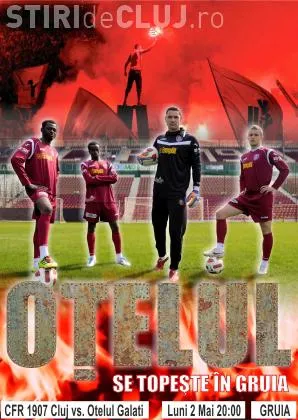 Partida CFR Cluj-Otelul Galati este programata luni, 2 mai, de la ora 20.00.