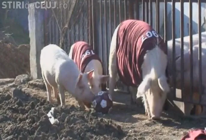 CFR Cluj, batjocorită înainte de meciul cu U Cluj. Porcii de fermă ”îmbrăcați” cu tricouri vișinii - VIDEO