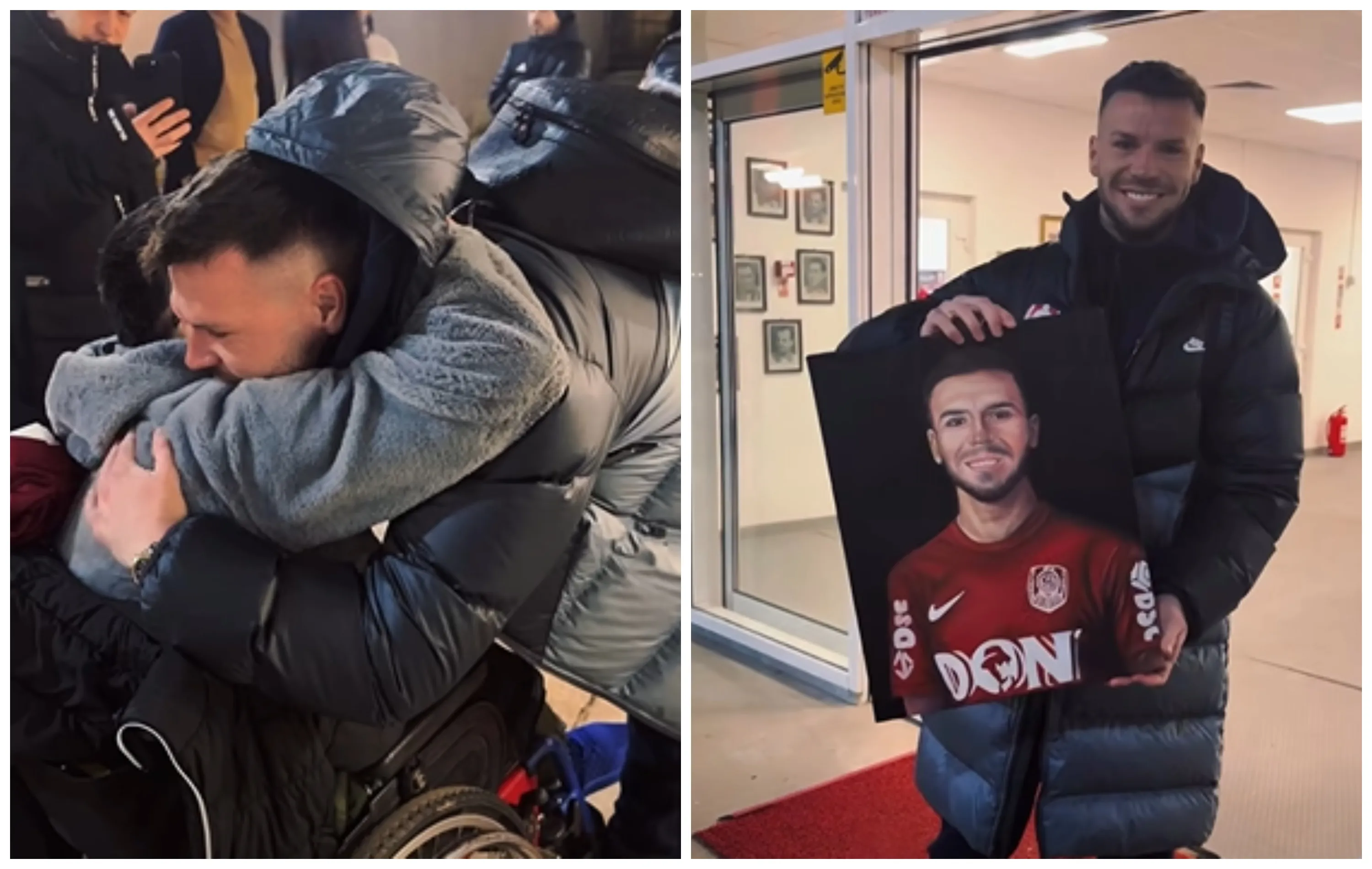 Un fan al CFR Cluj, aflat în scaun cu rotile, i-a dăruit jucătorului Andrei Cordea două tablouri pictate chiar de el, ca semn de apreciere și susținere.