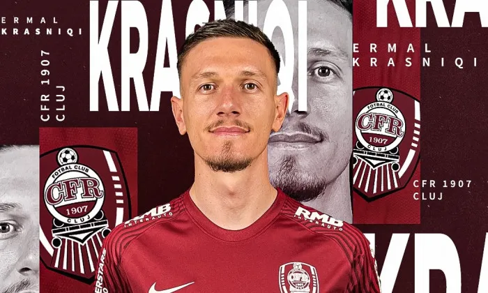 Mijlocașul a fost adus la Cluj în 10 ianuarie 2023, iar CFR Cluj a plătit pentru Ermal Krasniqi 200 de mii de euro echipei din Kosovo, FC Ballkani, cu care a jucat în competițiile europene.