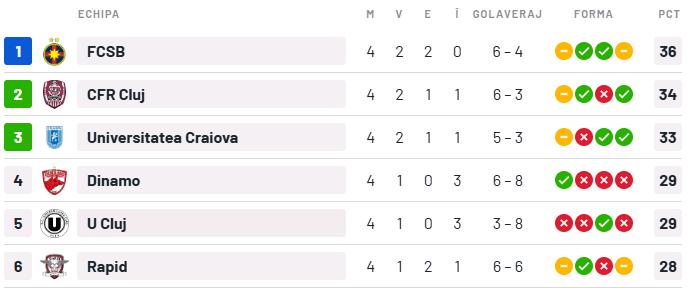 CFR nu reușește să revină pe primul loc după meciul cu Rapid, dar rămâne în lupta pentru titlu