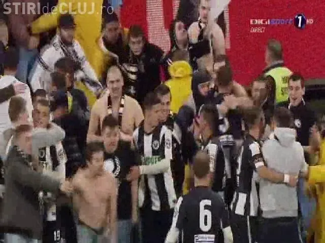 Incidentul s-a produs la finalul meciului, când jucătorii s-au îndreptat spre galeria U Cluj, iar suporterii au sărit să-i îmbrățișeze și felicite.