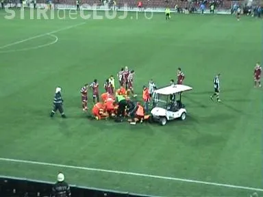 Medicii de la SMURD i-au acordat atacantului ingrijirile medicale. El a fost scos de pe teren pe targa si cu masca de oxigen pe fata.