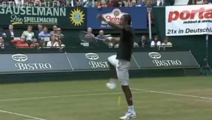 Francezul Gael Monfils a oferit un spectacol de excepție în cadrul unui meci de tenis din cadrul unui turneu din Germania, unde a executat o lovitură aproape imposibilă.