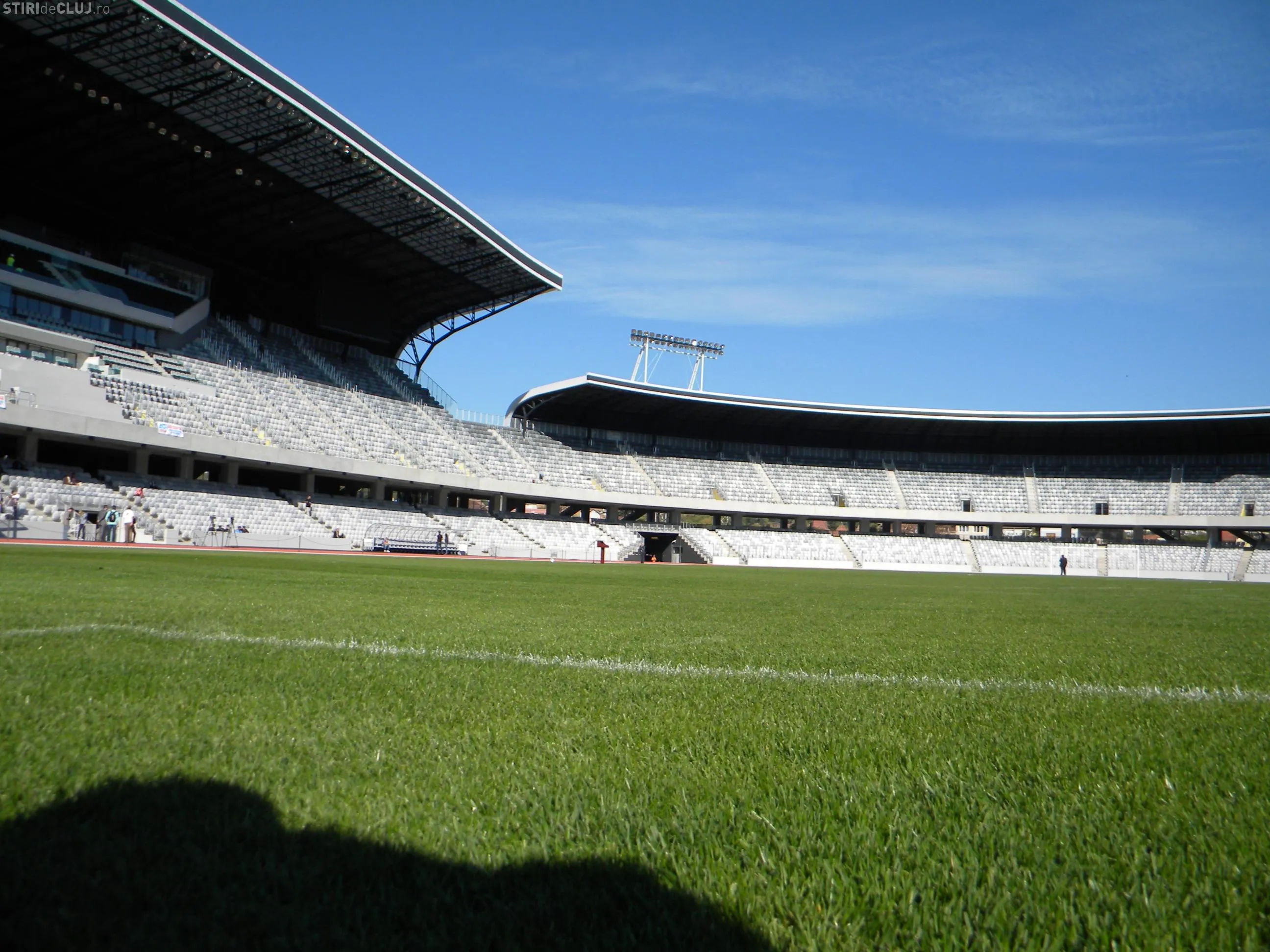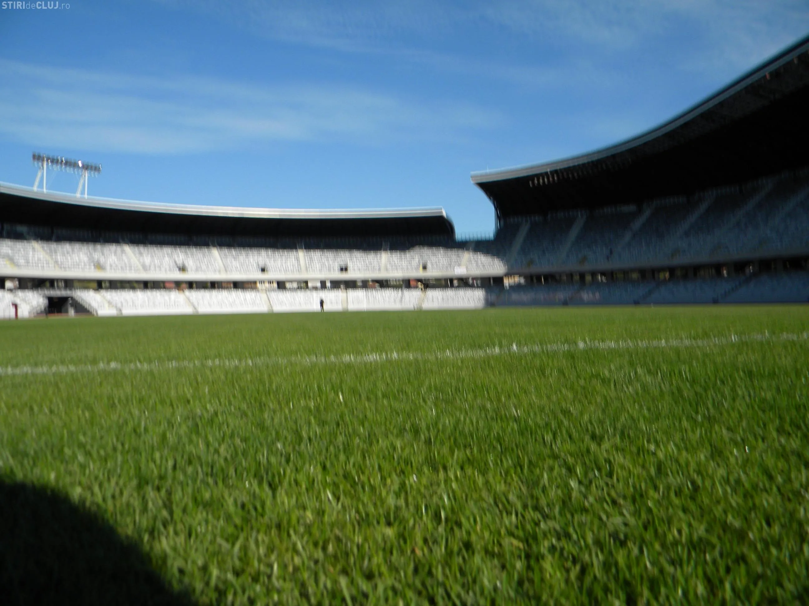 Stadionul Cluj Arena este gata de inaugurarea oficiala, programata sa inceapa dupa ora 11.00. Gazonul este intr-o stare excelenta, tribunele goale impun respect, iar sunetistii verifica instalatia audio.