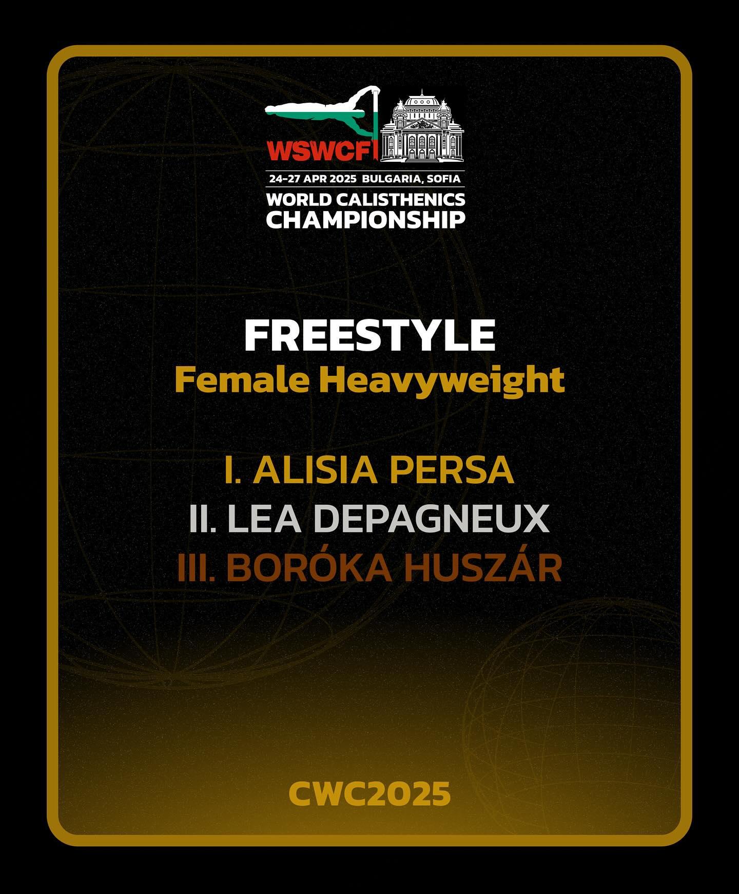 „Locul 1 la Campionatul Mondial 2025 – categoria grea. Dacă EȘTI DOBORÂT, ridică-te! Sunt atât de recunoscătoare pentru fiecare dintre voi care m-ați susținut – sunteți o motivație incredibilă! A fost extraordinar să petrec timp alături de minunata comunitate de calisthenics – ne revedem curând!”, a transmis Alisia.