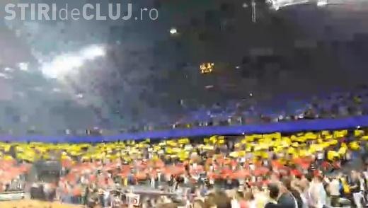 Spectatorii au afișat cartonașe formând tricolorul, iar deasupra tribunelor au fost afișate diverse mesaje, inclusiv fotografiile sportivelor din lotul național.