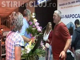 Corina Croitoru, Alina Dumitru si antrenorul Florin Berceanu au fost intampinati cu flori pe Aeroportul International din Cluj, la revenirea in tara de la Mondialul de Judo de la Paris.