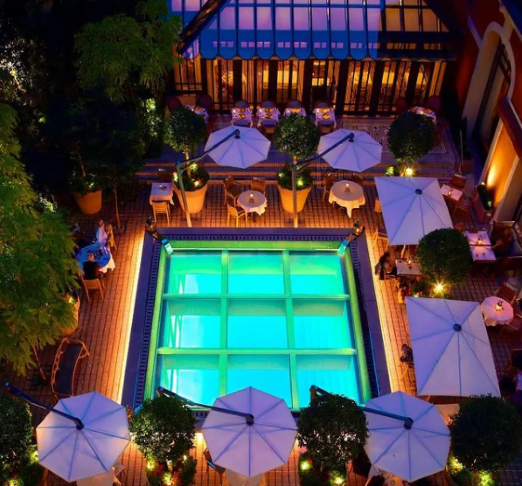 Renovată complet după planurile celebrului designer francez Philippe Starck, clădirea are un aer deosebit de elegant și dispune de facilități de lux, printre care mai multe locuri de servit masa, în care se combină preparatele locale și cele internaționale, pregătite de bucătari cu stele Michelin, scrie Digi Sport.