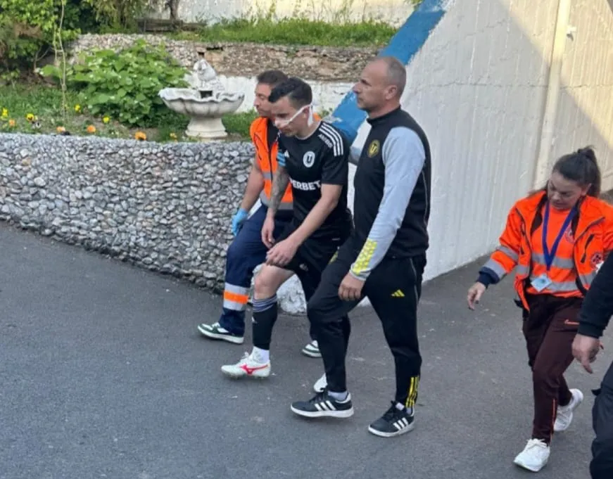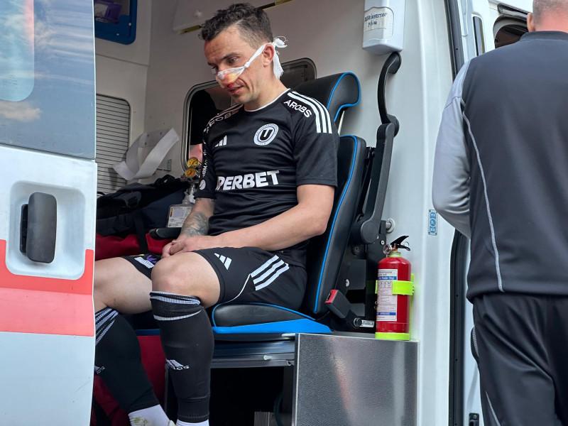 Partida s-a prelungit cu câteva minute bune, iar staff-ul medical a fost nevoit să acționeze imediat. Umplut de sânge, jucătorul ardelenilor a părăsit suprafața de teren în momentul în care hemoragia a încetat.