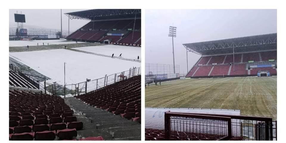 În această seară, de la ora 21:00, CFR Cluj și FCSB se vor înfrunta în etapa 24 de campionat, în Gruia, unde ieri a nins necontenit. Fanii echipei CFR Cluj au dat o mână de ajutor clubului și au participat ieri la deszăpezirea gazonului înaintea partidei cu FCSB.