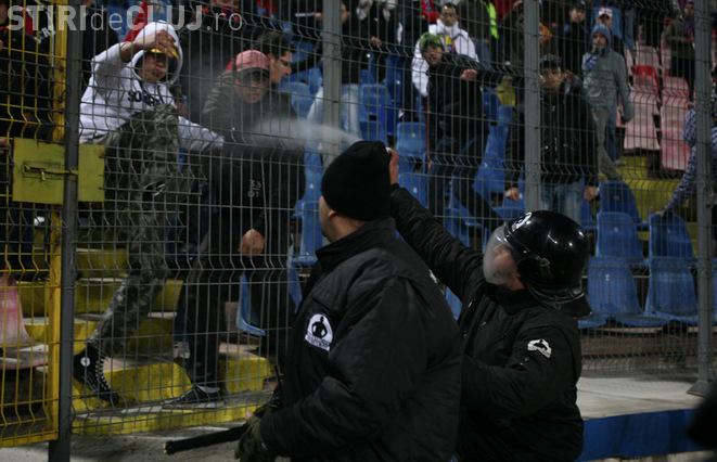 Cand au fost evacuati suporterii de la Tribuna a doua, suporterii de la Peluza Nord au aruncat o torta spre "zona de conflict". Rafuiala a continuat dupa meci si jandarmii au facut arestari.