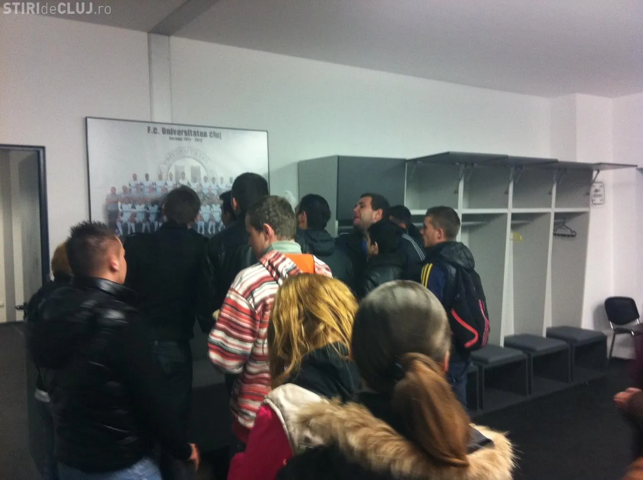 Primii norocosi au fost elevii din clasa a 12-a de la Grupul Industrial Tehnofrig din Cluj-Napoca. Acestia au fost dusi in sala multifuncionala a stadionului, au vizitat loja VIP, vestiarul jucatorilor, dar si sala de conferinte, unde au stat pe scaunele pe care stau antrenorii la final de meci.