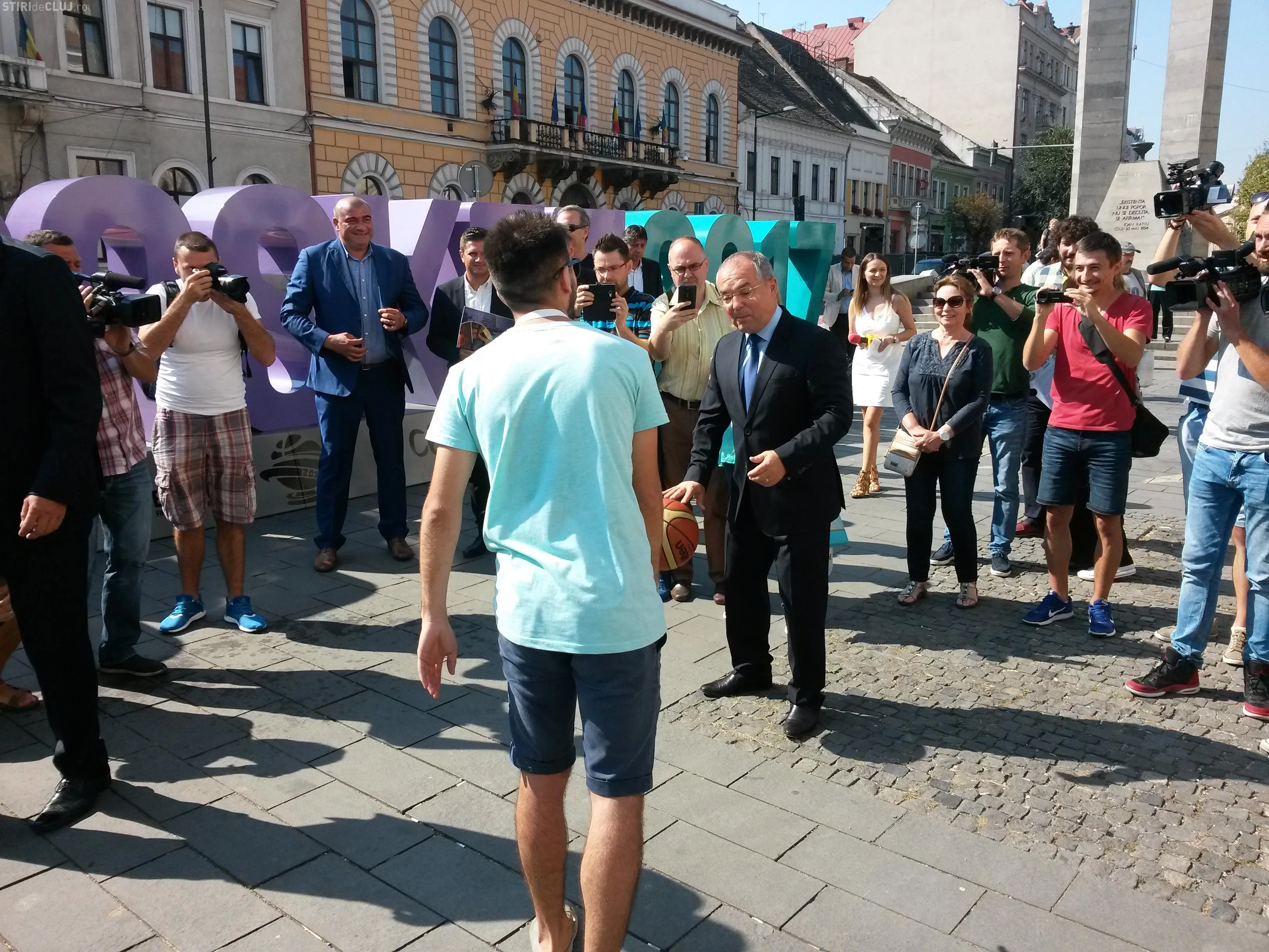 Primarul Clujului, Emil Boc, a jucat baschet în centrul orașului, după ce a fost provocat de comediantul Mircea Bravo.