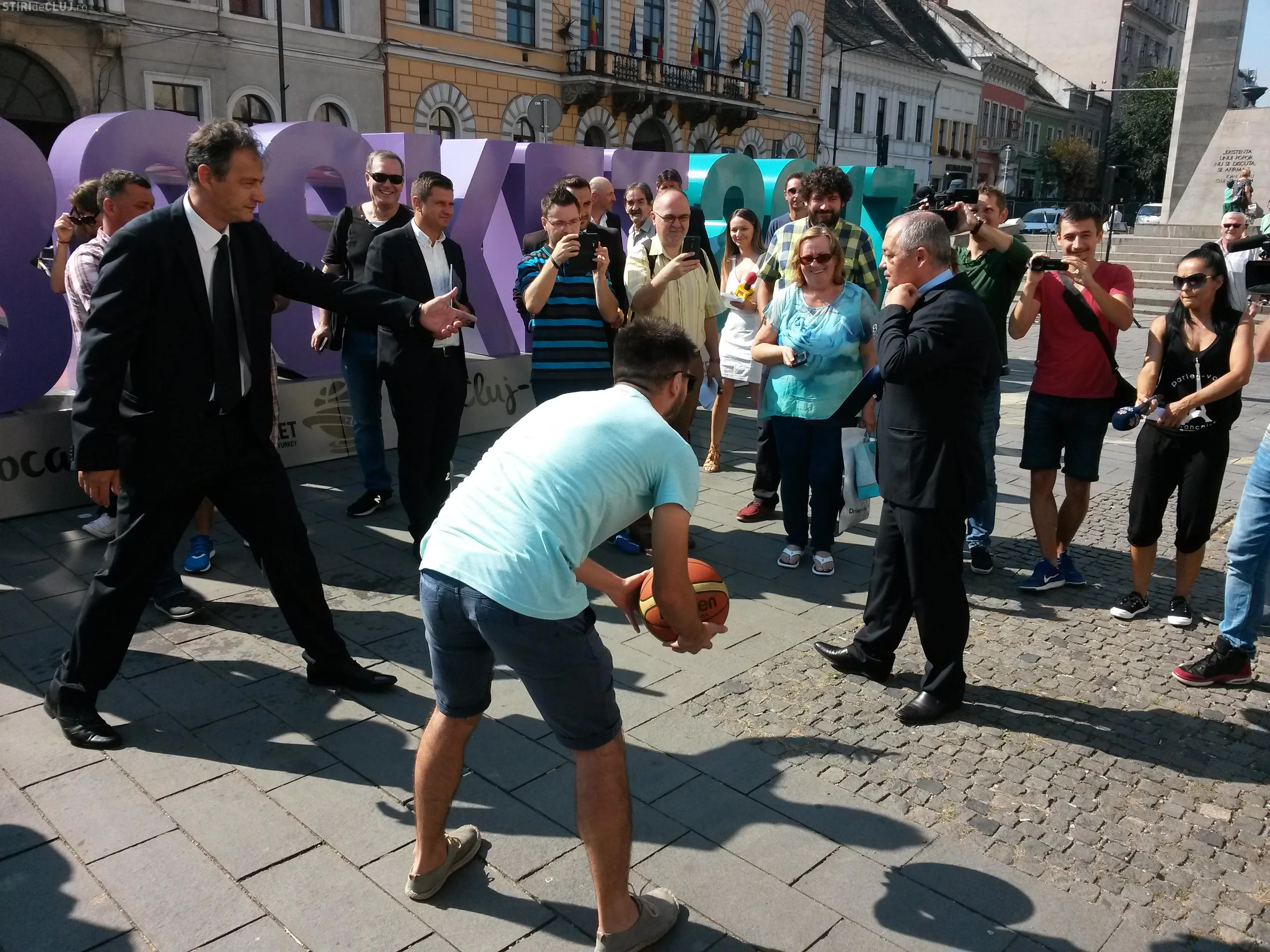 Mini partida de baschet a avut loc la finalul evenimentului prin care s-a dat startul pregătirilor pentru Campionatul Eurobasket 2017, ce va fi găzduit la Cluj-Napoca anul viitor. Cu acest prilej a fost prezentată și o construcție gigant, amplasată pe pietonala de pe Bulevardul Eroilor, și care a fost dezvelită în același timp în alte trei orașe europene, care vor găzdui meciuri din cadrul Eurobasket 2017. Clujenii își vor putea face fotografii lângă aceastîă construcție și să le posteze cu hashtag-ul #EUROBASKET 2017.