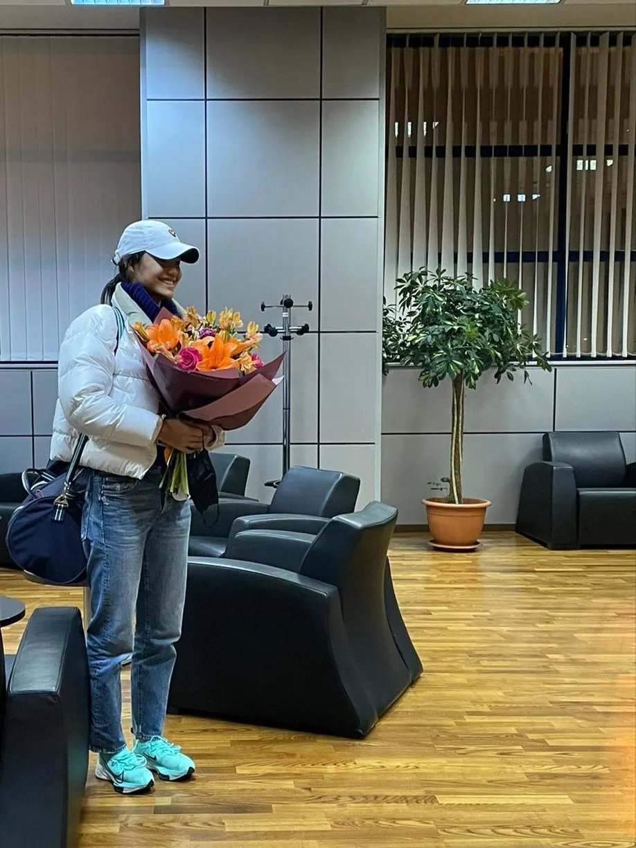 Patrick Ciorcilă, directorul turneului, a primit-o cu flori pe Aeroportul Cluj.