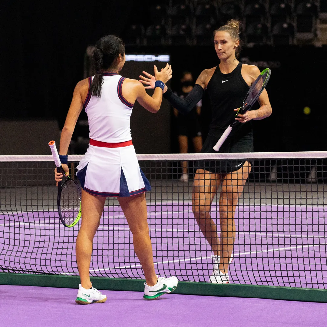 Jocul a fost unul foarte bun, arătând de ce este în stare Emma Răducanu, câștigătoarea de la US Open. Au fost lovituri de senzație, în care sportiva din Marea Britanie a arătat că e un talent nativ. ”A fost un meci foarte dificil. Ea a fost bună. Nu cred că am jucat foarte bine, dar am câștigat. Mulțumesc foarte mult. Îmi place România foarte mult. Cred că sunt acasă aici. Am multe amintiri din România și mă bucur că joc în țara tatălui meu. Îmi e rușine că nu vorbesc foarte bine, dar dacă aș sta mai mult aș vorbi mult mai bine”, a spus Emma Răducanu.