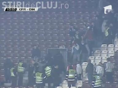 Fanii CFR Cluj si Dinamo s-au batut in tribune si a fost nevoie de intrerventia fortelor de ordine pentru a calma spiritele.