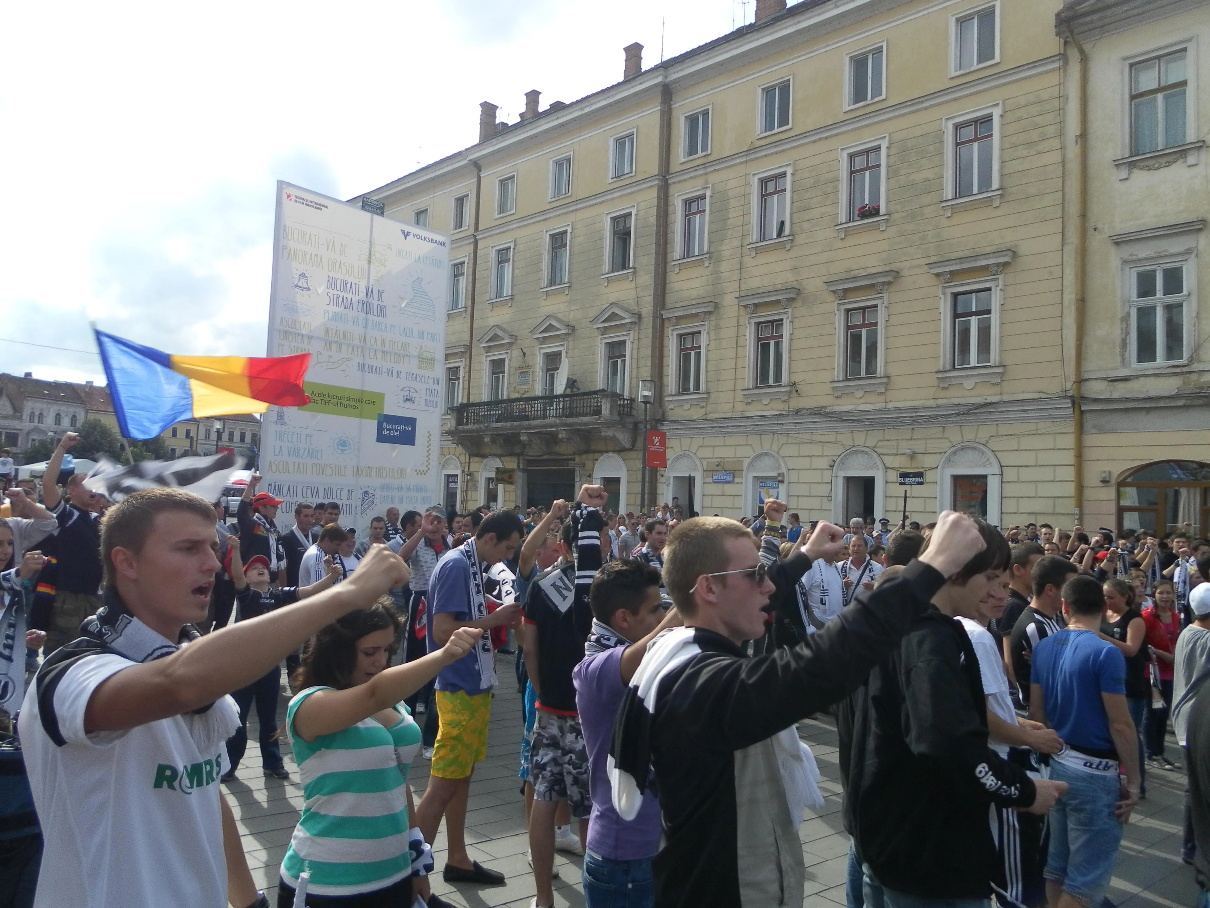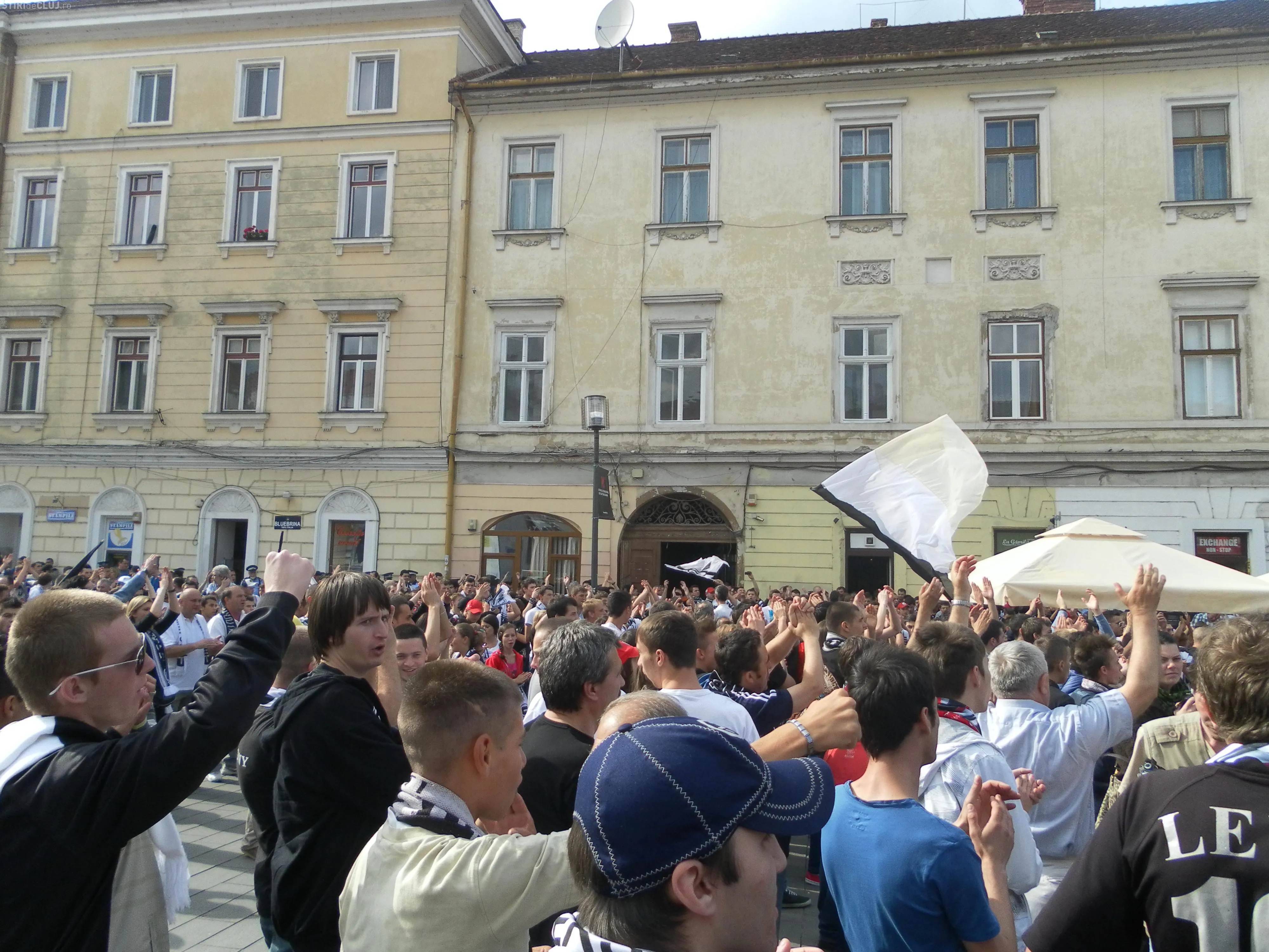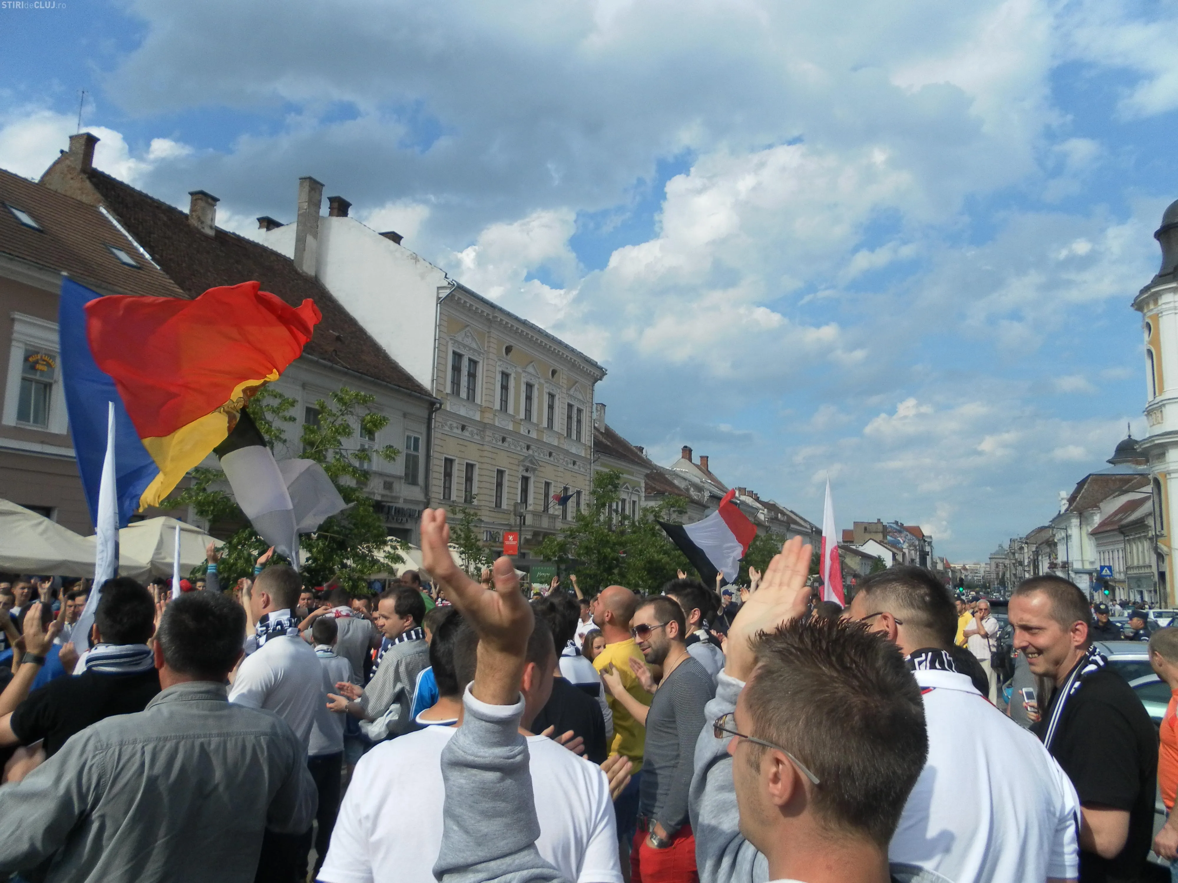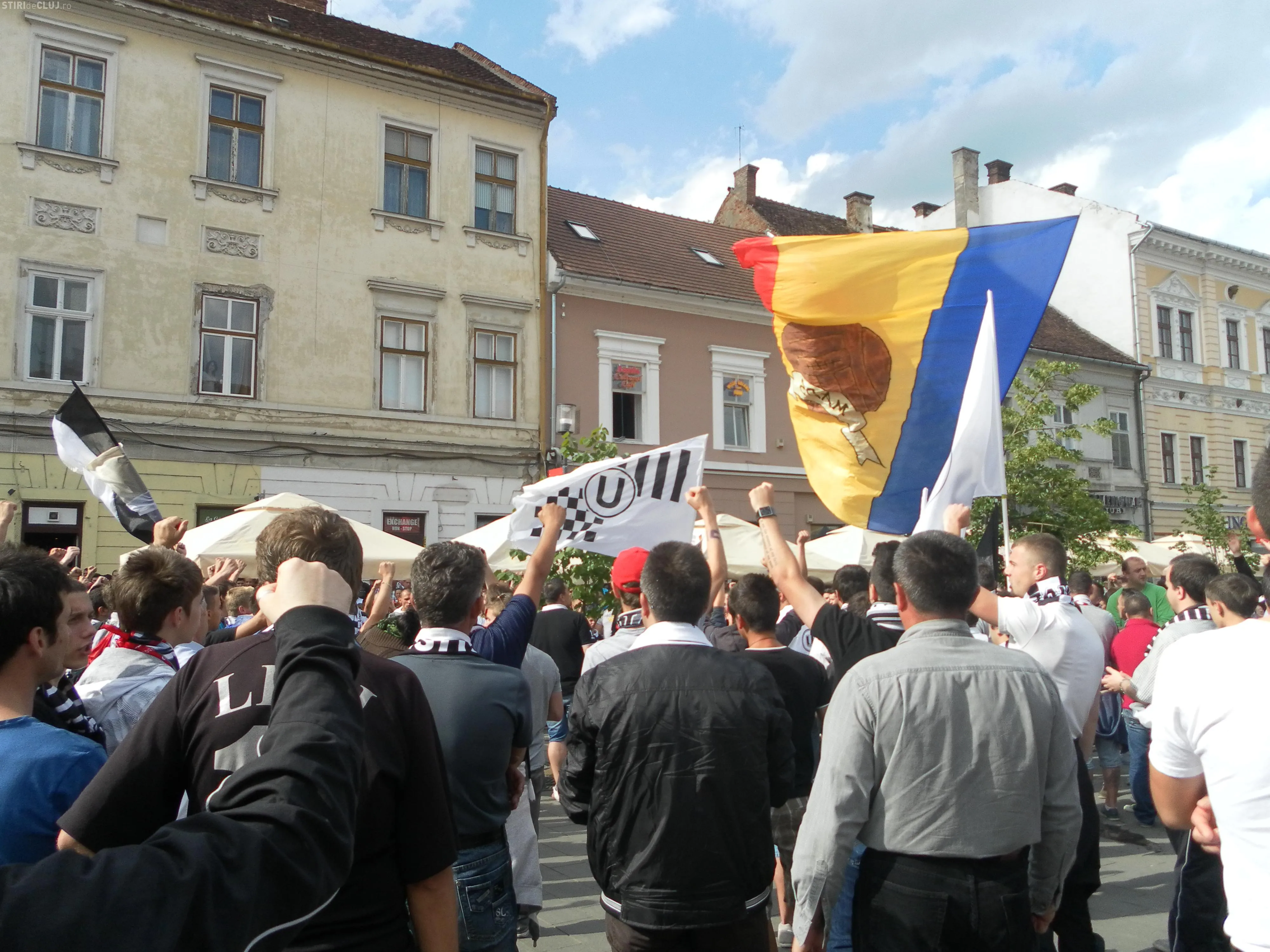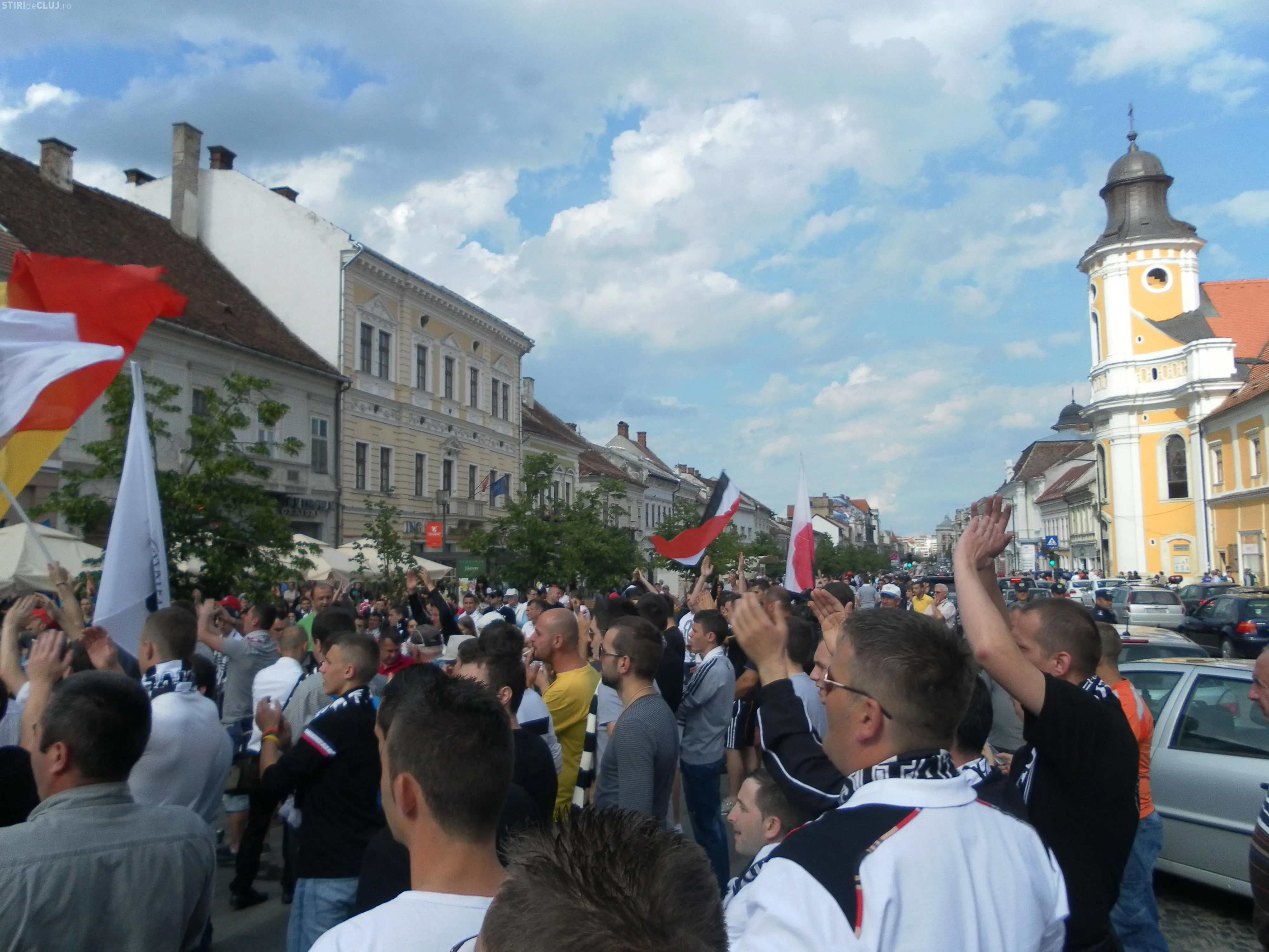 Fanii Universitatii Cluj s-au adunat azi, 7 iunie, de la ora 17.00 pe Bulevardul Eroilor, in semn de sustinere pentru echipa.