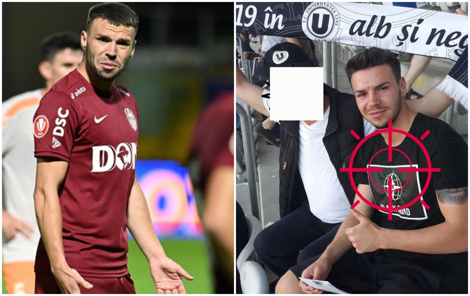 FOTO. Fotbalistul de la care a început haosul din Gruia după CFR - „U”... în galerie la Universitatea. Mesaj dur din tabăra alb-negrilor: „Absolut jalnic”