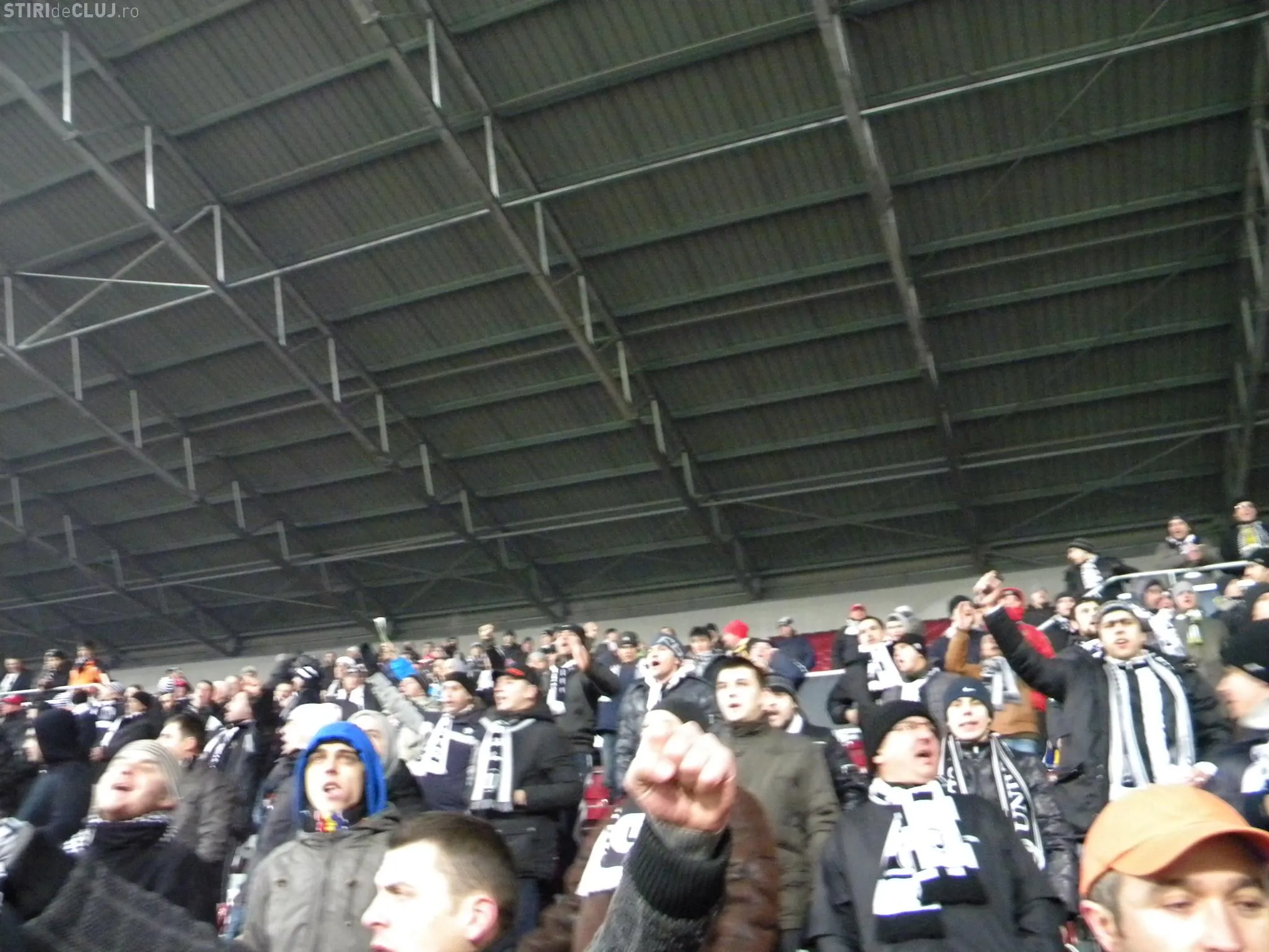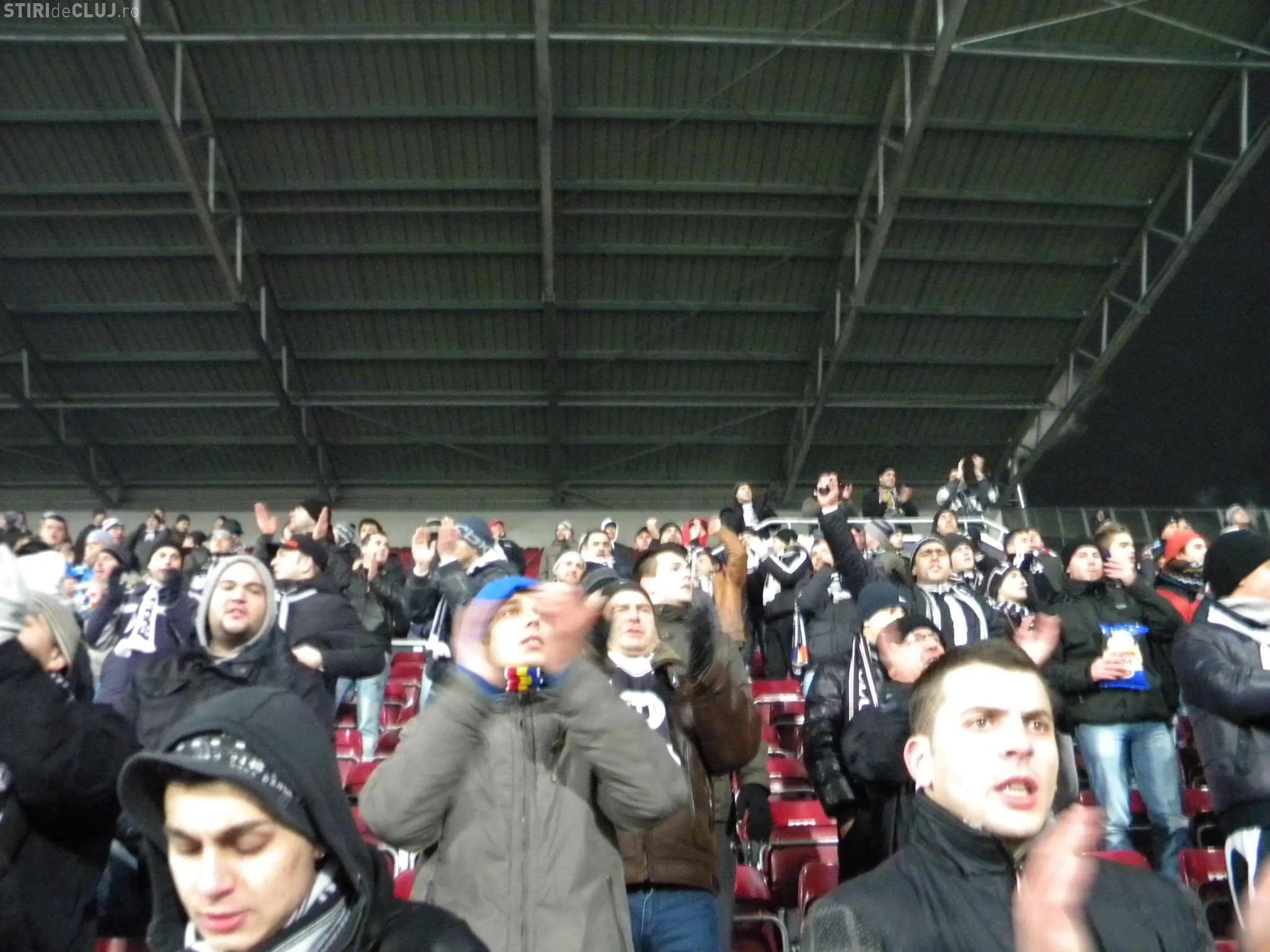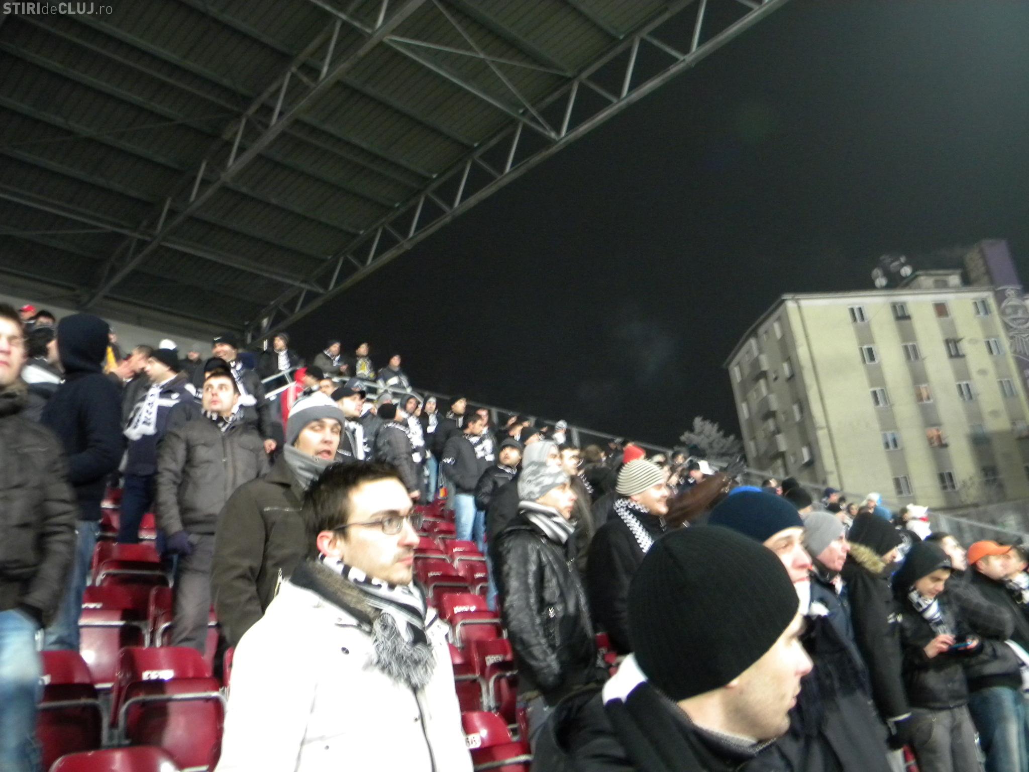Universitatea este sustinuta de circa cinci sute de suporteri la peluza si de inca circa o mie la Tribuna II, reiusind sa domine fondul sonor.
