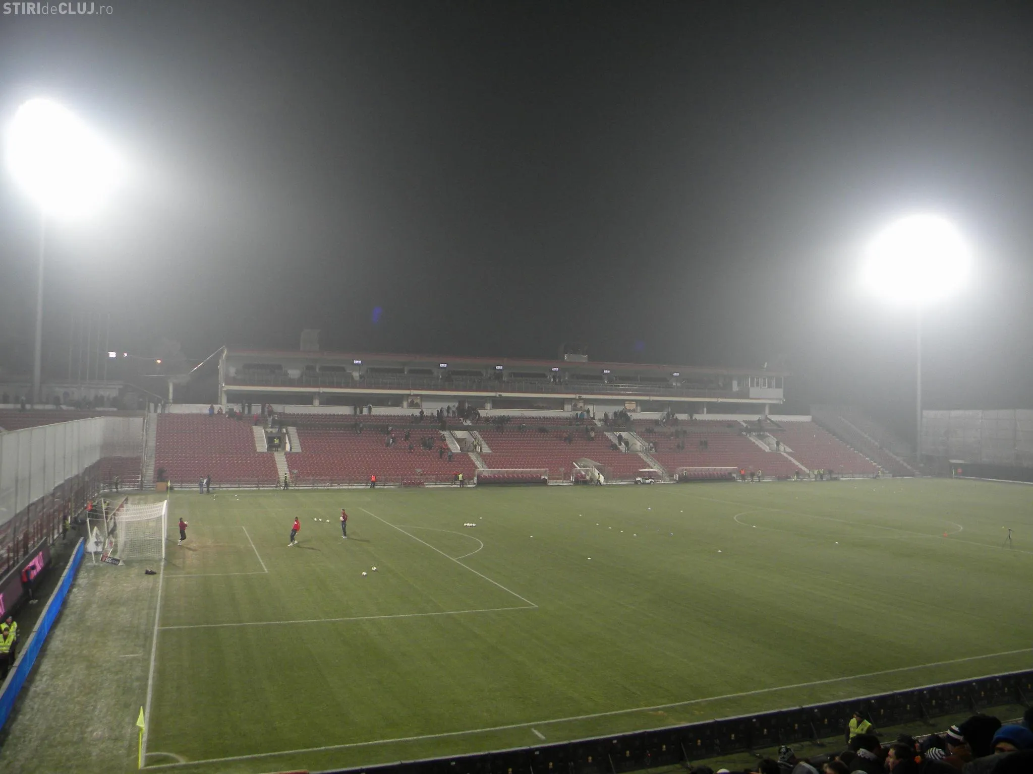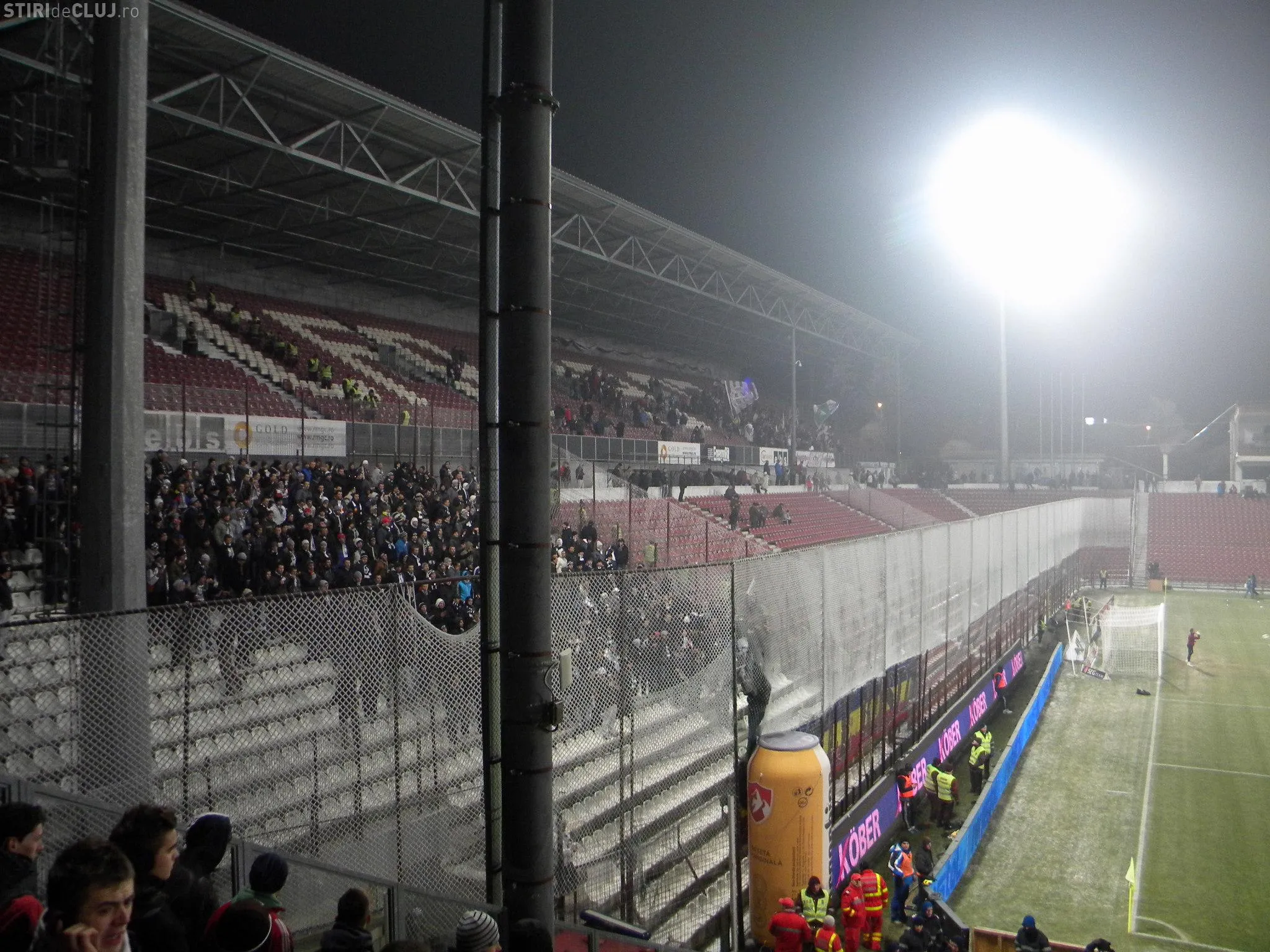 Cu douazeci de minute inainte de inceperea meciului, tribunele sunt aproape goale si galeria CFR este coplesita numeric de cea a Universitatii.