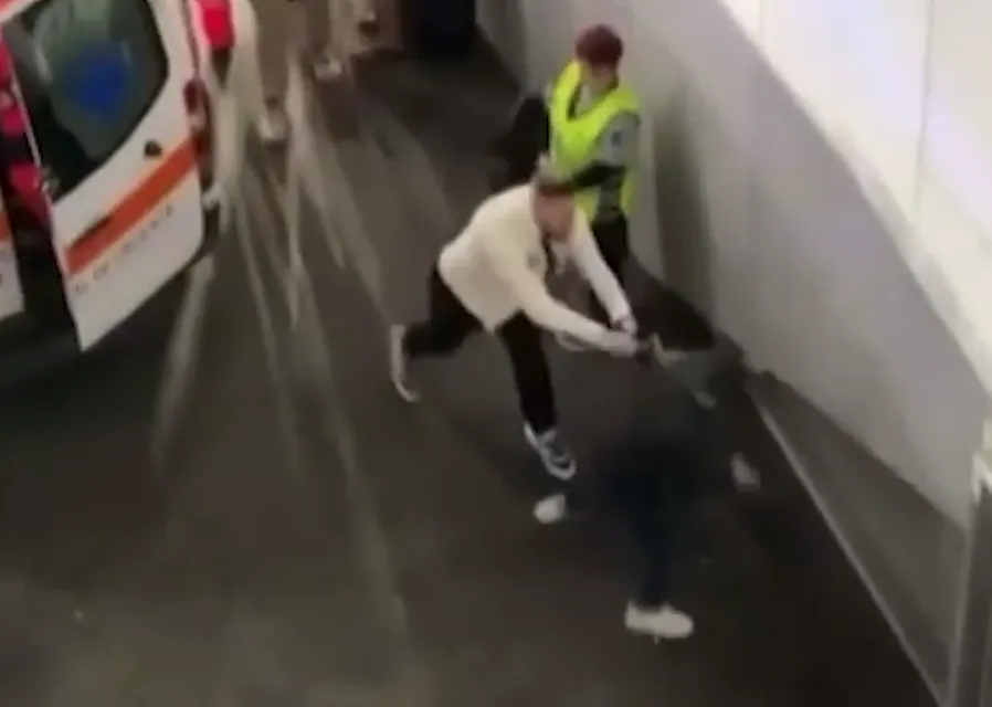 Agresiunea s-a desfășurat chiar sub privirile forțelor de ordine, 8 jandarmi asistând impasibili la momentul violent.