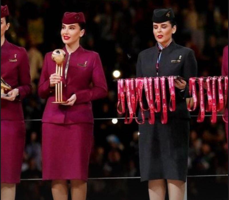 Pentru ceremonia de premiere de la finala Cupei Mondiale din Qatar, oficialii țării arabe au apelat și la mai multe stewardese ale companiei aeriene Qatar Airways, pentru a aduce medaliile și trofeele, scrie Libertatea.