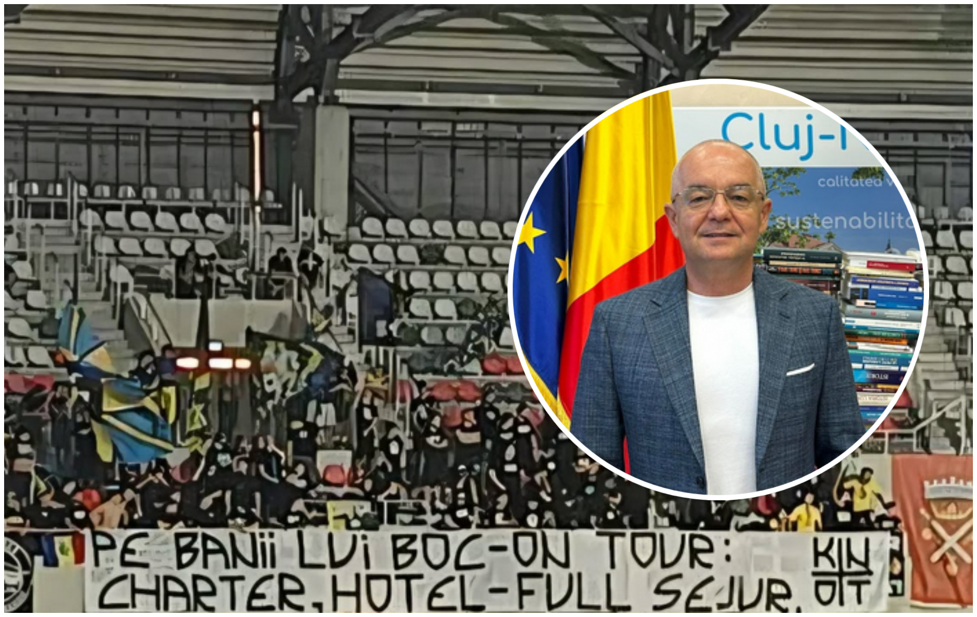 Așadar, nu au lipsit injuriile, dar nici mesajele ironie. Unul a lovit chiar sub centură și i-a fost adresat inclusiv lui Emil Boc. „Mesaj afișat de grupul KNOT (Petrolul Ploiești) la meciul din deplasare cu Universitatea Cluj. Pe banii lui Boc-on tour: Charter, Hotel-full sejur”, arată Ultras România 1918.