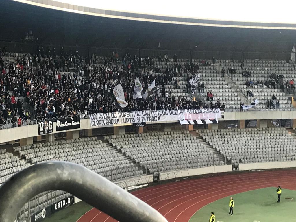 ”Curaj Radu, luptă și fii tare!”, au scris suporterii U Cluj pe bannerul afișat pe Cluj Arena, la meciul cu Poli, câștigat cu 1-0.