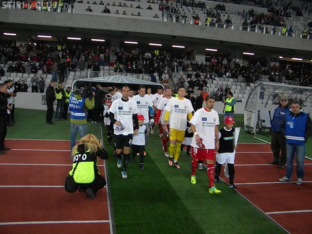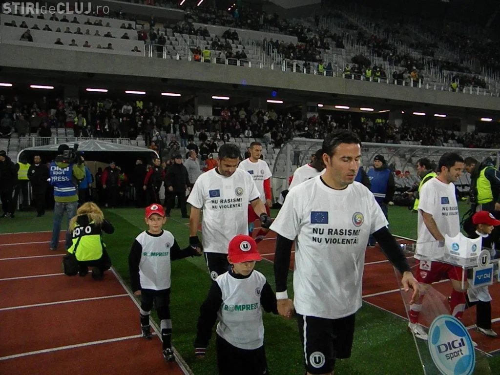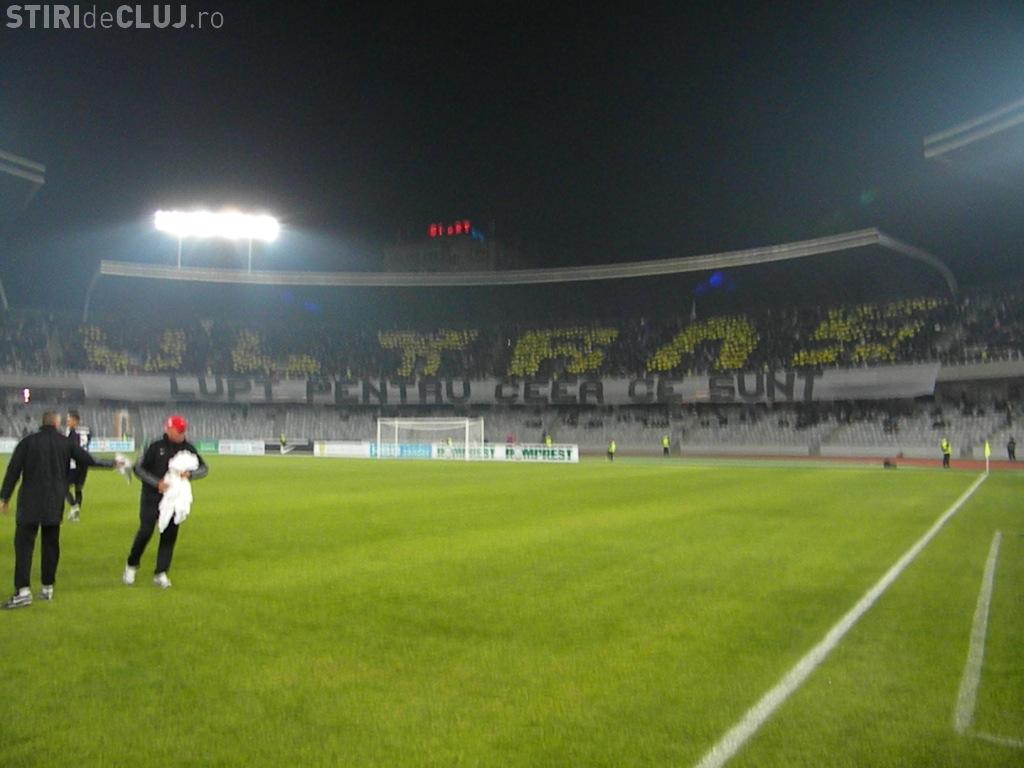 Circa 5.000 de suporteri ai U Cluj au cantat inca de la inceputul meciului si au reusit sa acopere fondul sonor creat de cei de la Dinamo.