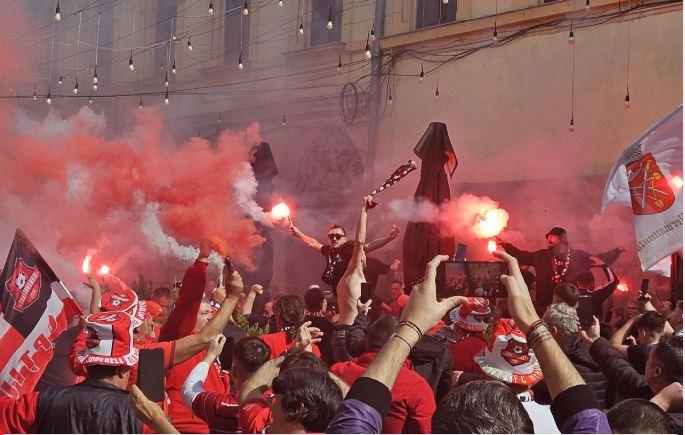 Orașul Arad a fost cuprins de spiritul competiției, mai întâi străzile, iar apoi peluzele stadionului s-au transformat în adevărate scene de spectacol. Suporterii celor două echipe și-au susținut favoriții cu coregrafii impresionante și mesaje pline de pasiune.