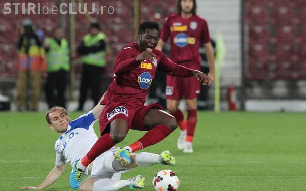 Clujenii au jucat din minutul 68, fără Tade, care a fost eliminat.