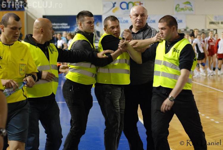 Gheorghe Tadici a facut scandal la meciul U Cluj Jolidon - HC Zalau si a intrat in teren, intrerupand partida.