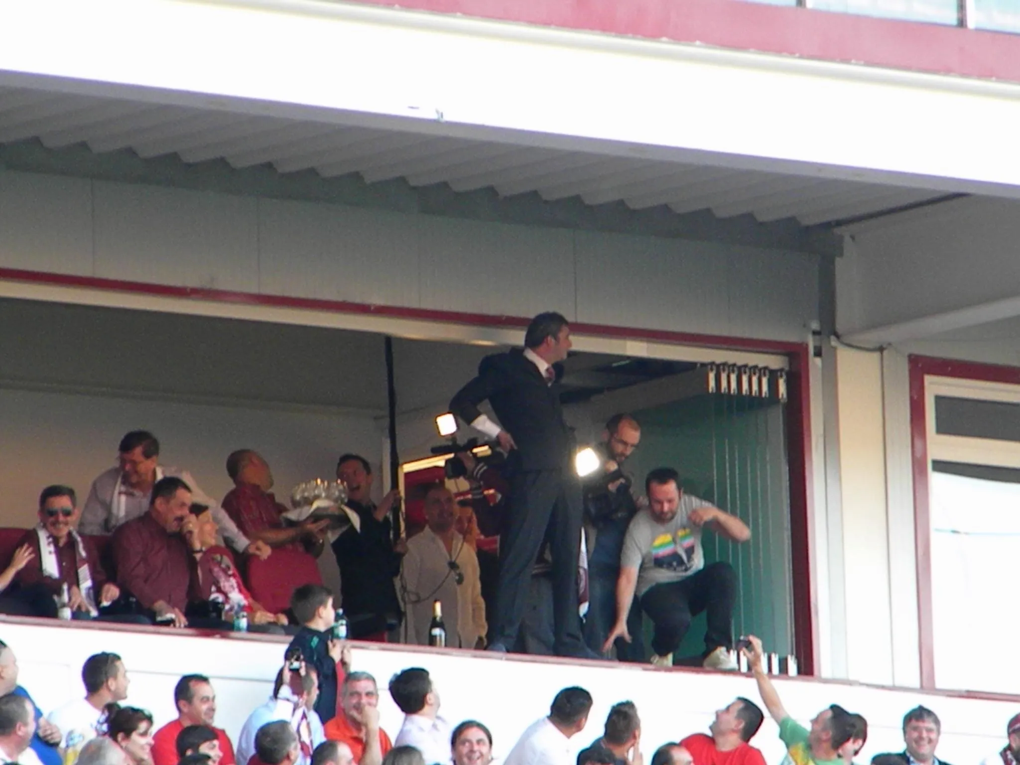 Imbracat ca si Becali, Nicu Bendea a deschis o sticla de sampanie si a ridicat mainile in sus, sfidand pe toata lumea.