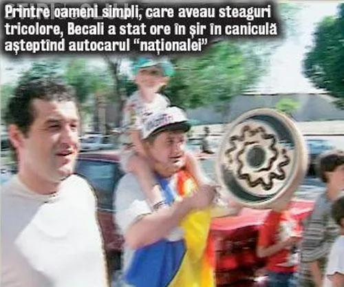 Gigi nu era foarte schimbat, ca infatisare, fata de cel de azi. Era insa mult mai modest imbracat si nu avea bodyguarzii cu el. Purta un tricou alb, sub care se vedea un lant gros si a stat la rand sa primeasca autografe. In imaginile difuzate de TVR 2 se vede ca a fost ocolit de noroc si vedetele nationalei au trecut pe langa el.