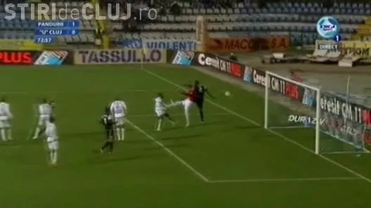 Un gol corect inscris de Universitatea Cluj in minutul 72 al meciului cu Pandurii Targu Jiu a fost anulat pe motiv de fault la portar.