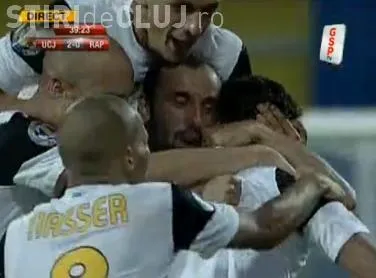 Claudiu Niculescu a majorat scorul in minutul 40 al meciului dintre U Cluj si Rapid. "Clau-gol" a inscris cu o executie de super atacant la viclul portii lui Coman.