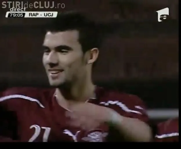 Fundasii de la U Cluj au fost pasati ca si la miuta de catre rapidisti. Mingea a fost centrata si, din coltul careului, pasata lui Sburlea care a sutat puternic, inscriind primul sau gol pentru Rapid Bucuresti.