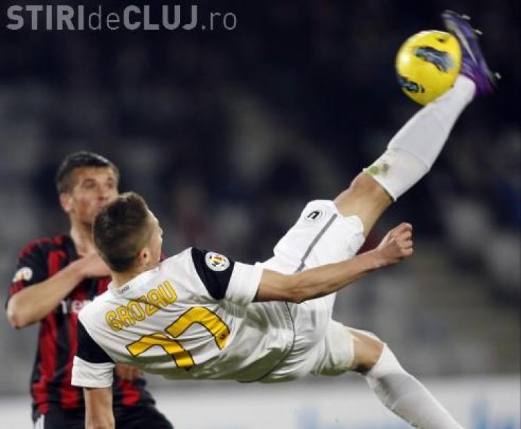 In minutul 76 al meciului U Cluj - Astra, din etapa a 22-a, Grozav a reusit sa marcheze printr-o foarfeca de senzatie, dupa o centrare de pe dreapta a lui Cojocnean. Universitatea a castigat partida cu 3-1.