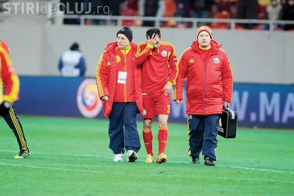 Constantin Grecu, jucatorul U Cluj, s-a accidentat inainte de meciul Romania - Uruguay, in timp ce facea incalzirea.