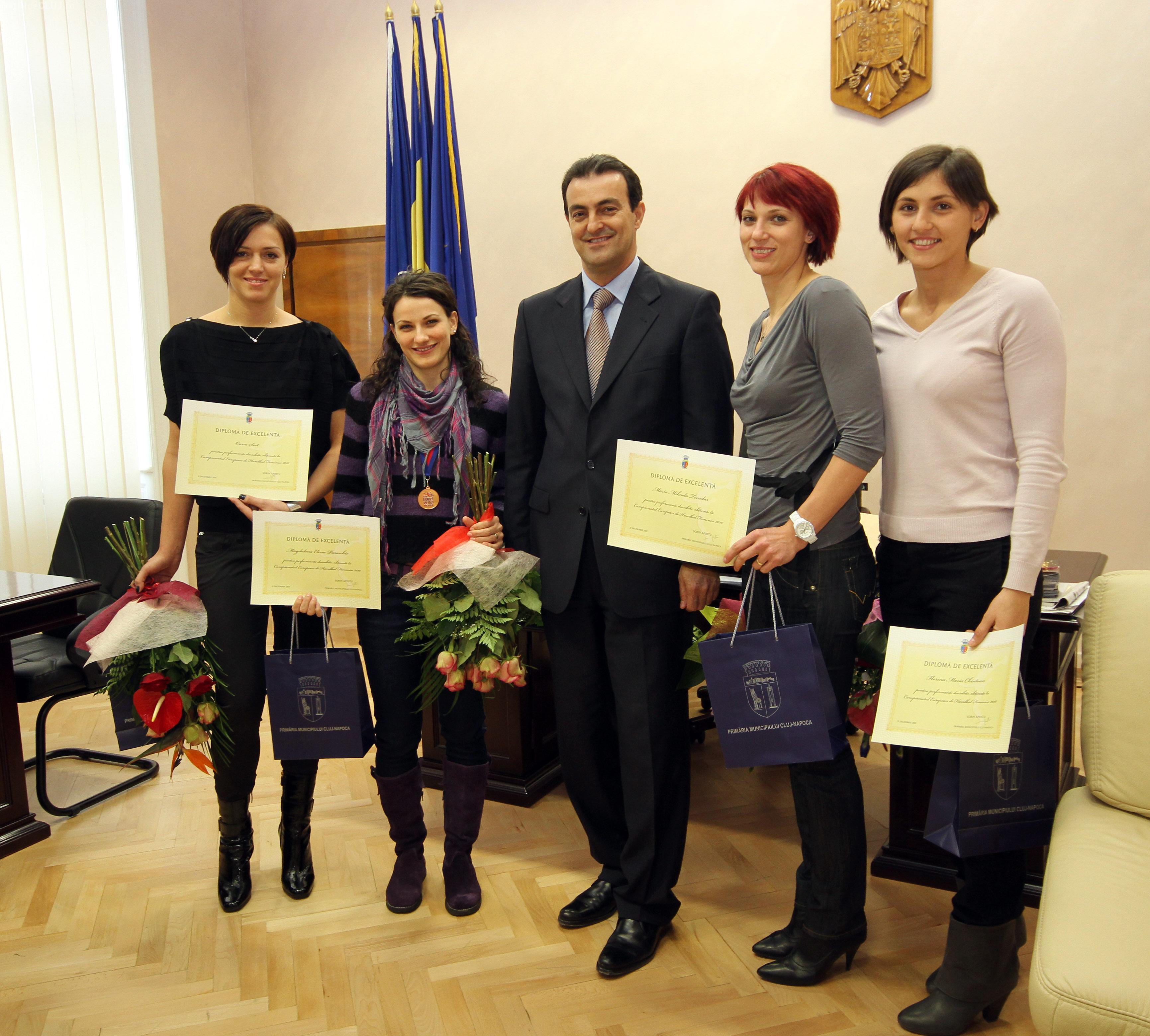 Sportivele au primit din partea primarului flori si cate o diploma de excelenta, pentru reusita lor.