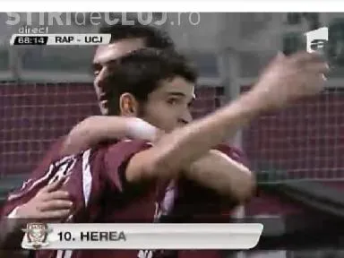 Faza a pornit de la o lovitura de colt, iar balonul a trecut pe la mai multi rapidisti, ultimul fiind Ovidiu Herea, care, cu o foarfeca, l-a invins pe Hutanu. Portarul clujenilor a fost spectator, a scapat mingea, si s-a trezit cu un gol.