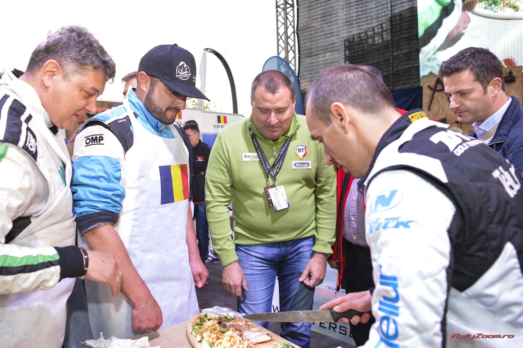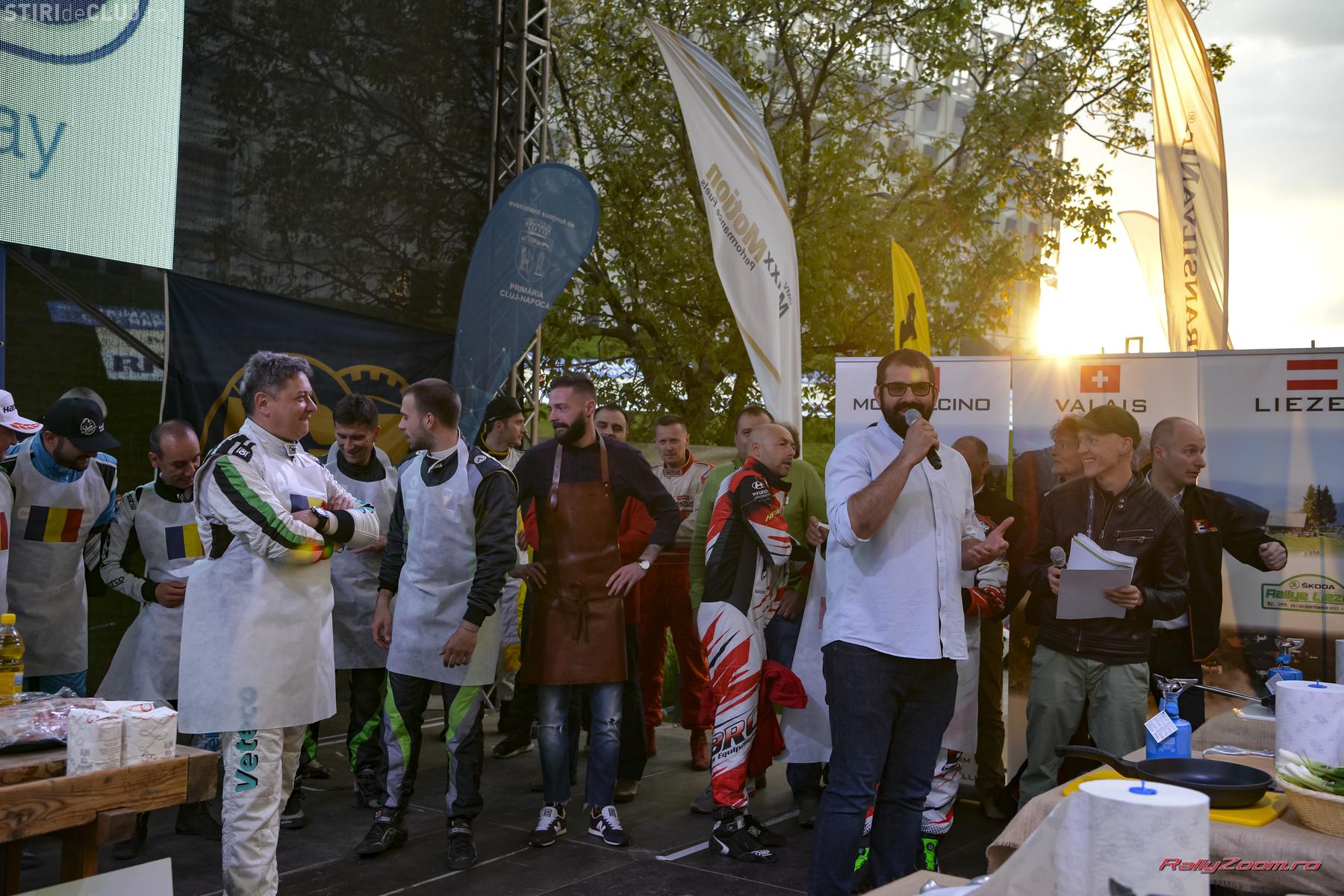 După conferința de presă de deschidere a raliului, pe eslanada dintre Cluj Arena și Sala Polivalentă au fost organizate activități sportive și recreative, jocuri pentru copii, expoziții de artizanat. Atracția serii a fost show-ul concurs de gătit condus de master chef-ul Adi Hădean. Cinci echipe a câte trei piloți au urcat pe scenă, având de îndeplinit cerința chef-ului Hădean: friptură de Turda cu varză călită. Juriul, format din organizatorul BT Transilvania Rally, Marco Tempestini, directorul general De Longhi Romania, Massimo Panarotti, viceprimarul Dan Tarcea și promotorul TER Luca Grilli, a deliberat după 30 de minute de gătiti și a decis că echipa românească formată din Simone Tempestini, Bogdan Marișca și Dan Gîrtofan a realizat cel mai delicios platou.